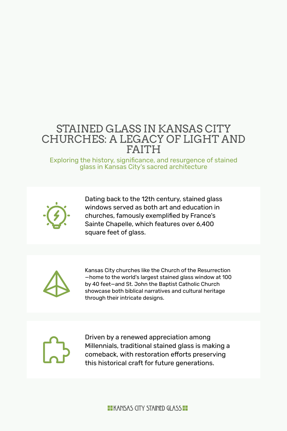 Stained glass serves as a window into the past while brightening the present. As enthusiasts and craftsmen, we are thrilled to be part of this legacy and invite you to visit us online at Stained Glass Windows in St. Louis for an in-depth exploration of our work. Our creations not only enhance architectural beauty but also enrich cultural and historical narratives that continue to inspire.